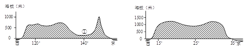 4、单选题 下面为两大陆沿21°纬线的地形剖面图,据图判断问题。