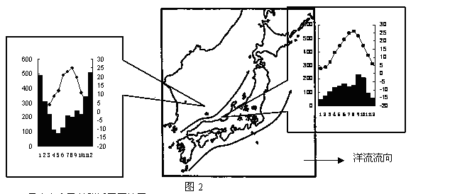 2、分布在F处的气候在此处分布的最高纬度低于35。,其主要的影响因素是