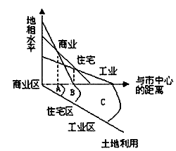 本题解析:本题考查城市的功能分区。图示反映三种经济活动的地价高低都是由市中心向外