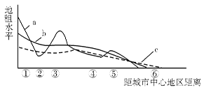 1.图中三条曲线分别表示2.图中横坐标上数字所在的“距离段”,表示住宅区可能性最大的是3.从地租水平来看,图中③和⑤可能位于