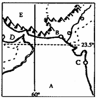 4、单选题 下图为世界局部地区示意图,读图回答下面问题。
