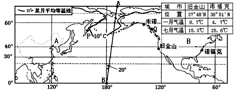(3)根据表格数据分析,旧金山、诺福克两城市中,____市气候海洋性较强,____市沿岸附近海洋有寒流流经。(2分)