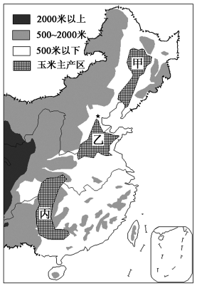 A.①以山地牧业为主,农业多分布在河谷地带 B.③渔业产值高,以近海养殖和远洋捕捞为主 C.④南部和北部的农业差别大,南部热量足,种植业比例大,北部牧业比例大 D.⑤面积最小,农业总产值最低 5、填空题 图是我国玉米主产区分布示意图。读图回答题。 |