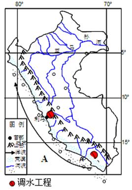 (1)根据所示国家为秘鲁,其西部沿海地区为秘鲁寒流,该洋流从高纬度地区流向低纬度地区,故为寒流;该地区海水上泛,带来丰富的营养盐类,鱼类饵料丰富,形成大型渔场。