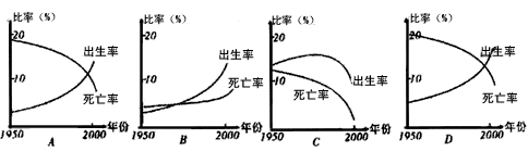 3、单选题 下列四幅图中,能反映建国后我国人口状况变化的是