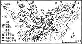 3、综合题  下图为某城市示意图,读图回答下列问题:(12分)