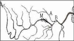 1.《长江之歌》里有句歌词:“你用健美的臂膀挽起高山大海……”,这里的高山和大海分别指的是2.A河在B城流入长江,A河是3.图中M水利工程枢纽是