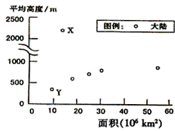 4、单选题 如下图是各大陆的面积与平均海拔高度关系示意图,据此回答1—2题。