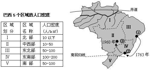 (2)巴西历史上多次迁都,1763年由①城市迁往②城市,1960年由②城市迁往③城市。简述巴西南②城市迁都于③城市的空间变化意义。