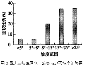 (2)重庆三峡库区水土流失面积比重最大的土地类型是________;在地形坡度5°~25°范围内,随着坡度的增大,水土流失面积比例________。