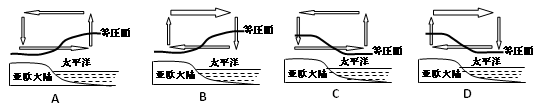 (4)下图中能正确示意此日期前后亚欧大陆与太平洋间气压分布与大气环流状况的是:(??? ) (1分)