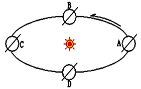 (1)在下图(地球公转轨道图)中绘出赤道平面和坎昆世界气候大会期间地球在公转轨道上的大致位置。(2分)