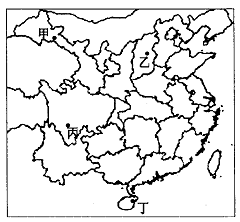 5、单选题 2011年9月29日21时16分,“天宫一号”在酒泉卫星发射中心成功发射。图中甲、乙、丙、丁四地为我国四大卫星发射基地位置。回答3--4题。