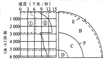 3、填空题 读“地震波速度与地球内部构造示意图”,完成下列要求:(共6分)