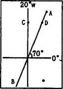 3、综合题 下图中AB为晨昏线的一部分,A为晨昏线上纬度最高点,C和D在同一纬线上,A、D、C三点所差经度数相同,此时地球公转速度较快。读图回答下列问题。