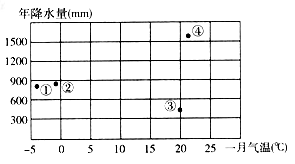 【小题2】城市④一月气温高于20°,且年降水量较大,应为高雄。高雄1月气温也很高,是因为位于北回归线附近,纬度较低。