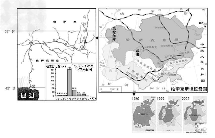 3.如图所见,咸海面积在不断地缩小,原因是什么?其导致的自然灾害是什么?
