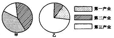 3、综合题 读“甲、乙两个国家的产业结构图”,回答下列问题(9分)