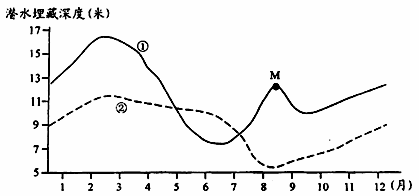 A.受台风影响,降水多,潜水埋藏浅 B.受准静止锋影响,降水多,潜水水位高 C.受副高影响,降水少,潜水水位低 D.受冬季风影响,降水少,潜水埋藏深 参考答案:小题1:B? 本题解析:试题分析:小题1: 潜水的埋藏深度是指地面到潜水面的垂直距离,某地的潜水埋藏深度等于该地的等高线值(或范围)减去等潜水位线值(或范围)。气候因素(气温、湿度、风速等影响潜水的蒸发,降水量和降水的特征(细雨或暴雨))、地质因素(岩性和厚度、地形坡度)、植被分布状况均会影响地表水的下渗,从而影响潜水的补给。就本题而言主要是各地不同月份降水量的差异导致该地潜水的埋藏深度,降水越多,潜水的埋藏深度越浅。图中①地2月潜水的埋藏深度最深,降水最少,6月潜水的埋藏深度最浅,降水最多,8月潜水的埋藏深度又变深,可见该地8月降水也变少了,这样的情况符合江南丘陵,2月雨带未到达,降水少,6月正值梅雨,降水多,8月副高控制,降水再次变少。②地9月—次年6月潜水的埋藏深度较深,降水少,7月下旬—8月潜水的埋藏深度较浅,降水多,该地符合华北地区,雨带集中于每年的7、8月份。 本题难度:一般 3、单选题 上图的4个图中,符合该市河流流向的是 参考答案:A 本题解析:从地形看,河流由高陡的地方流向低缓的地方,选择A项。 本题难度:一般 4、综合题 阅读图文资料,回答问题。 参考答案:(1)气候原因:长江流域地处亚热带季风区,降水季节和年际变化 本题解析: 本题难度:一般 5、单选题 读洋流分布图,回答问题。 |