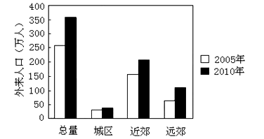 本题解析:小题1:读左边人口密度变化图,与1990年相比2000年和2010年近郊人口密度最大,中心和远郊密度降低,说明人口从城市中心、远郊向近郊迁移。
