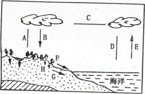 (2)、写出图中各字母代表的水循环。环节的名称:A????????????;C????????????。人类修建水库工程影响的是??????????????环节。