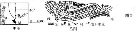 2、单选题 图3中,甲为某区域示意图,乙反映甲中的P地河谷及其附近地质剖面,P地河谷剖面形态的形成与地转偏向力的作用有关。读图3回答6~7题。