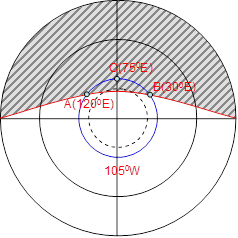 小题2:图中B支流的源头和该支流与干流汇合处同时迎来日出,即两地同在晨线上,同时太阳光线与晨线垂直(如图),判断太阳直射北半球——北半球夏季,南半球冬季。综上判断选A。