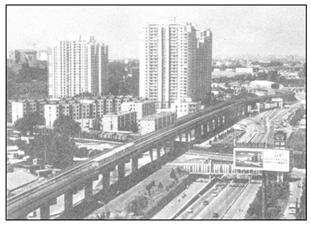 4、单选题 读下列材料:2013年底北京首条磁浮轻轨建成通车。下图为北京城市轻轨某路段图。读图回答:与其他城市公共交通方式相比,城市轻轨(??? )