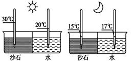 单选题 某学校地理研究性学习小组设计制作了如右图实验(容器中盛的海水,竖直插入海水和沙石中的仪器为温度表)。回答问题。