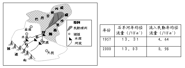 1.民勤绿洲水资源最充沛的季节是2.导致近50年来,民勤绿洲迅速退化的根源在于3.图示地区面临的主要环境问题是土地荒漠化,下列防治荒漠化的措施可行的是