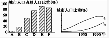 A.城市化水平一直低于全国水平,差距还在进一步扩大 B.工业化滞后于城市化,问题逐渐突出 C.2008年处于城市化中期阶段 D.2008年,该省城市普遍出现逆城市化现象 参考答案:小题1:A 本题解析:试题分析:小题1:分析表中数据,1990以来该省第一产业比重不断下降,劳动力应转移到其他产业,所以第一产业从业人口比重下降;1990年第二产业不占主导地位;第三产业产先升后降是比重不是产值;该省GDP总值不断增长,结构不断优化,环境承载力不断提高。故选A。 本题难度:简单 5、综合题 读下图,分析回答下列问题。(8分) 参考答案: 本题解析:本题考查城市化。 本题难度:简单 |
