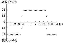 【小题1】读图可知,该地区每年有半年的时间是极昼,有半年的时间为极夜,且3月21日至9月23日为极昼,说明该地区位于北极点。