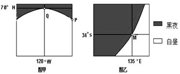 (4)该日,Q地的自转线速度???(大于或小于)P地,M地昼长为??????。(2分)