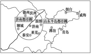 4、综合题 读“济南都市圈和山东半岛都市圈图”,结合材料,回答下列问题。(10分)