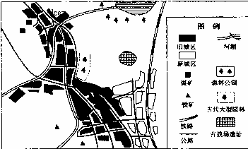 本题解析:小题1:本题考查城市区位因素。影响城市的区位因素有自然因素和社会经济因素。其中自然因素包括河流、地形、气候等;社会经济因素包括资源、交通、政策等。根据图中的图例,该地煤炭铁矿石资源丰富,在此基础上能形成钢铁工业。所以本题选择A选项。