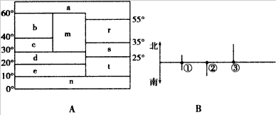 (4)图B中①地位于图A中________附近地区,③可能位于图A中的________地区,对应的自然带可能是