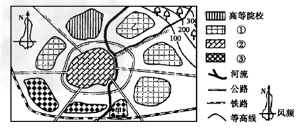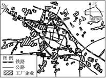 (2) 从图中反映出,该市工业在城市中的区位除上述分布特点外,还具有两个特点:一是_________________________________________,形成这一特点的原因是___________________________________________________________________。