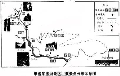 (4)请概括图所示旅游景区主要景点的分布特点。(3分)