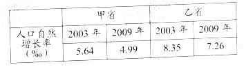 (2)??第六次全国人口普查显示,乙省人口总数超过了甲省,居全国首位。请结合图表信息简述其原因。(6分)
