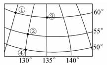 4、单选题 读某局部经纬网图,有关图中各点之间的最短距离的说法,正确的是( )