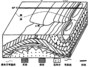1、单选题 图为40°N 附近某地等高线地形图和海平面以下地层示意图。下列关于A河的说法,正确的是( )