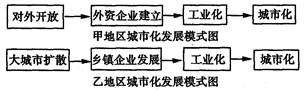 1、单选题 读甲、乙两地区城市化发展模式图,回答题。