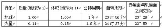 ②火星上和地球上都有四季变化且长度一样