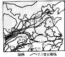 4、单选题 读2011年我国冬小麦开始收获期分布示意图。