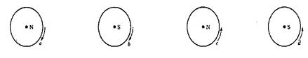 A.16°S-18°S之间 B.18°N-20°N之间 C.3°N-5°N之间 D.33°S-35°S之间 4、综合题 (11分)该图中阴影部分表示黑夜,横线箭头代表太阳光线。读图回答 5、单选题 下图能正确反映地球自转方向的是??(???) |