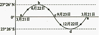 本题解析:小题1:因为A点是晨昏线与某一纬线圈的切点,而在一年中,晨昏线与纬线圈相切的点最低纬度是66.5。,由于该半球为北半球(地球逆时针旋转),所以,其切点应为66.5°N,那么,太阳直射点应在23.5°N上。