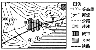 【小题2】图中铁路线明显穿过城市中心,这样会增加城市的交通压力。同时该铁路穿过一山地,坡度较大,不利于施工。