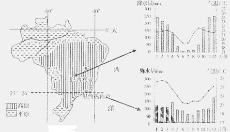 (2)依据图,比较巴西利亚和里约热内卢的气候特征的差异并分析成因。