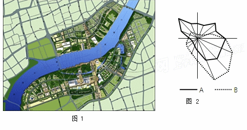 材料一:上海世博园区位于南浦大桥和卢浦大桥之间,沿着上海城区黄浦江两岸进行布局。图18为世博园规划示意图。
