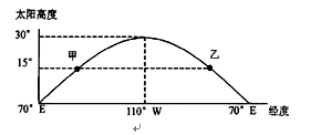 A.甲地日落晚于乙地 B.E地正午太阳高度小于N地 C.此时,北京昼长达一年中的最小值 D.此时,地球公转速度逐渐变慢 |